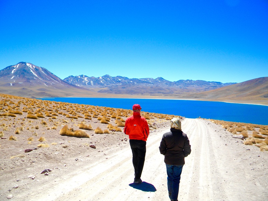 We will continue our way, driving up the international road towards the Sico Pass (Argentina), climbing gradually into the High Plateau, with incredible sights of the volcanic mountain range. On the way, we will pass by the little farmers’ village of Socaire, filled with terrace plantations, until we arrive at the impressive High Plateau Lagoons, Miscanti and Miñiques, at 4,350 meters above sea level. Surrounded by volcanoes and fantastic panoramic views, we will be able to contemplate the biodiversity of this area and the different altitude levels we have gone through. We will continue to the Talar Salt Flat and Piedras Rojas site to enjoy a breathtaking landscape from a unique viewpoint. We shall return to San Pedro in the afternoon (16:00 hrs).