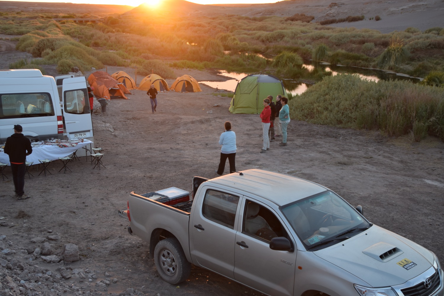 In the afternoon (16:30 hrs approximately), we will reach our campsite in the middle of a wonderful desert scenario. Here we can enjoy a relaxing moment in deep contact with nature. The total absence of artificial light, within the healing silence of the Atacama Desert, will let us connect with a unique night filled with stars.